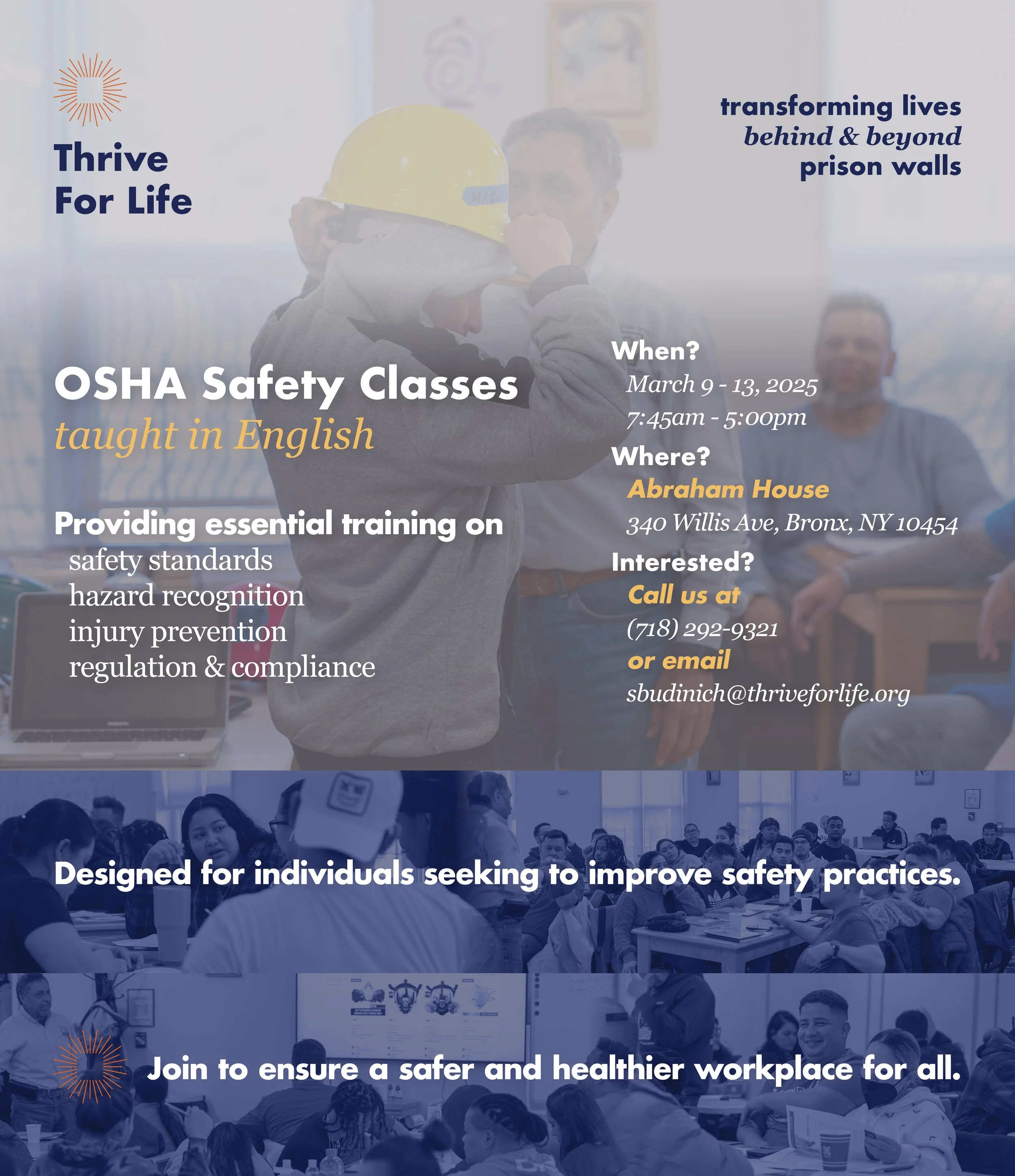 Para inscribirse, envíe un correo a cortiz@thriveforlife.org o llame al (718) 292-9321.